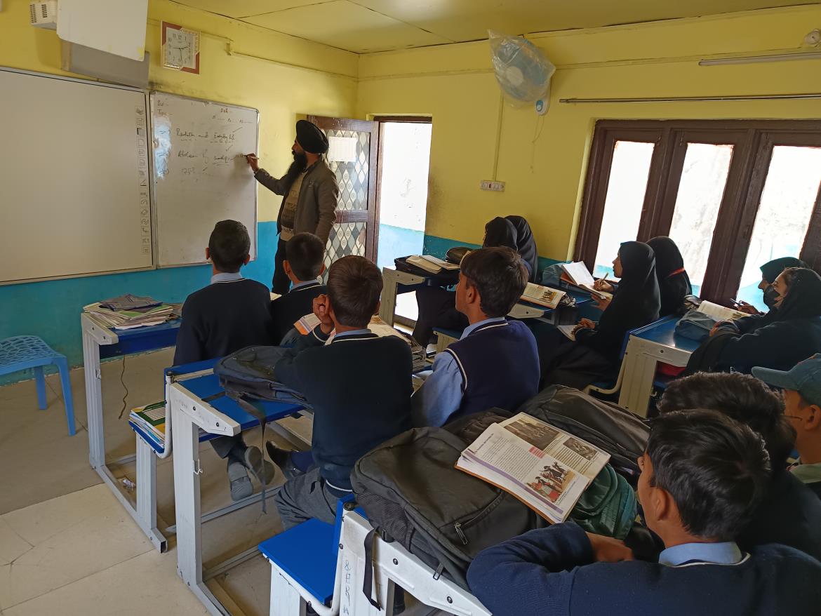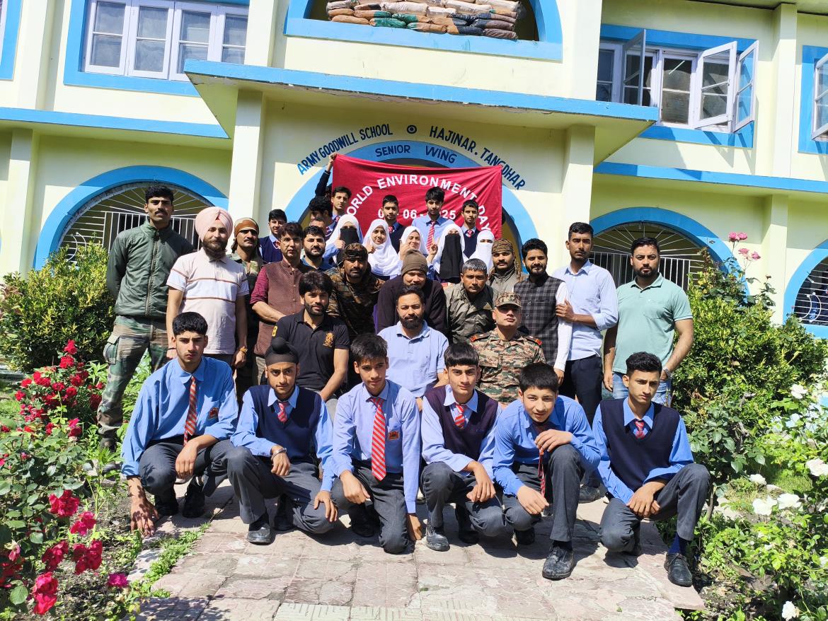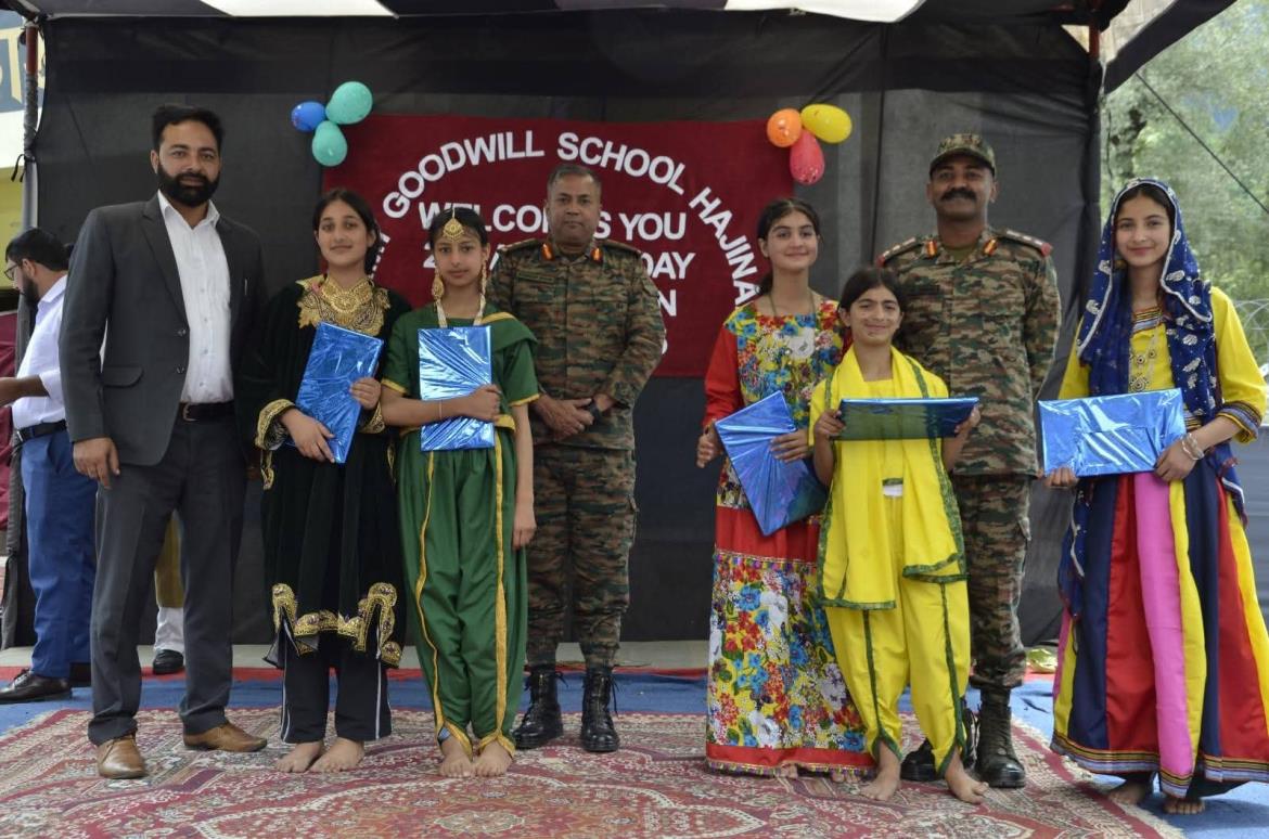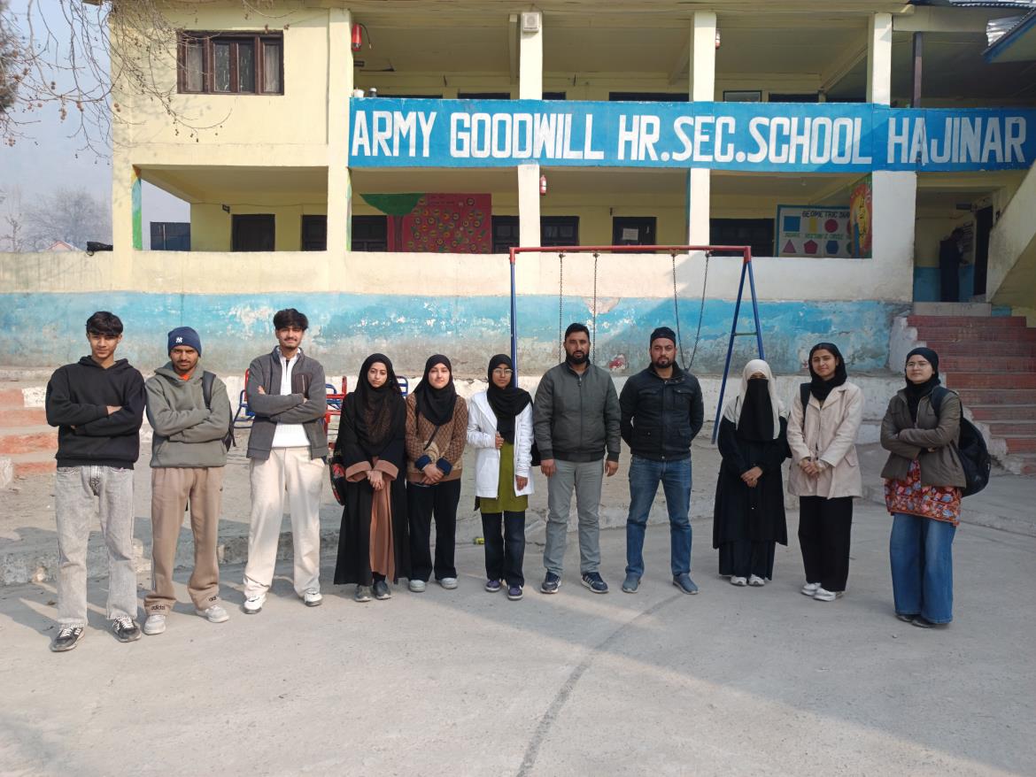 Army Goodwill School Hajinar came into existence in December 1999 with primary classes and has been upgraded to middle, secondary and Higher Secondary school in the year 2004, 2009 and 2020 respectively. At present school has 13 classes and 20 class rooms from UKG to 12th standard having total strength of 577 students with the combination of 391 boys and 186 girls. Our staff consists of 22 teachers including principal, 03 clerks 03 Lab. Assistants 01 Librarian and 8 Group D employees (Total 37). We also have facility of computer Lab,Atal Tinkering Lab, and library, science lab(Physics, Chemistry and Biology seperately) and auditorium. The science lab has been provided with necessary items, and having 11 digital smart smart classes. Drinking water facilities have been provided with installation of water filters for each classroom and multi tap water tank for school. The school is recognized by J&K Board of School Education and running with financial assistance from Sadbhawana Cell Shakti Vijay Brigade.
